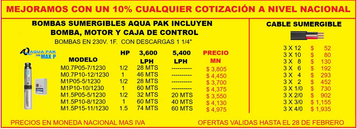 MEJORAMOS CON UN 10% CUALQUIER COTIZACION POR ESCRITO ENVÍOS A TODO MEXICO